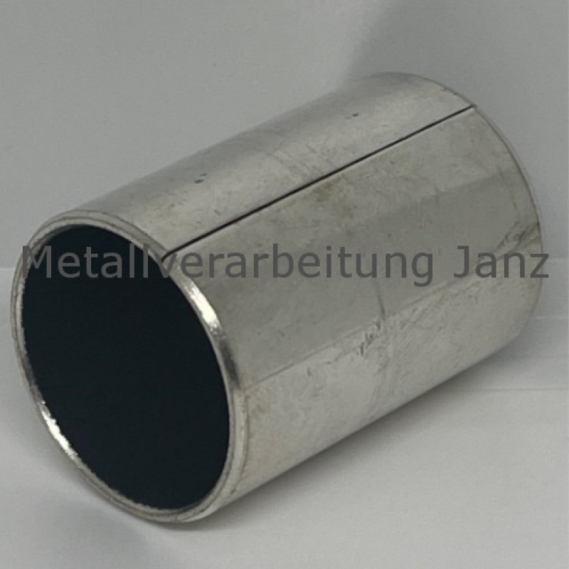 Völlig ungeschmierte Gleitlager Aufbau: Verzinnter Stahlrücken (inkl. Kanten). Multiporöse Bronzeschicht, Gleitschicht PTFE-Blei-Gemisch. Technische Daten: Stat. Flächenpressung max. 250 N/mm². Dyn. Lagerbelastung max. 56 N/mm². Reibungskoeffizient von 0,03 - 0,20. Gleitgeschwindigkeit max. 2 m/s. Temperaturbereich -195 °C bis + 280 °C. Therm. Leitfähigkeit 40 W/K*m. Empfohlene Einbautoleranzen: Gehäusebohrung H7, Wellentoleranz bis Ø55 : f7. Über Ø55: h8. Hauptmerkmale: Selbstschmierend und wartungsfrei. Einbaufertig. Optimal geeignet für niedere Gleitgeschwindigkeiten. Geringer Verschleiß, niedriger Reibungswert, kein ""Stick Slip"". Beste Eignung für Umlauf-, Schwenk- und teilweise Axialbewegungen. Einsatz bei höchsten Lagerdrücken. Unempfindlich gegen Stoßbelastungen. Keine Feuchtigkeitsaufnahme. Hohe Korrosionsbeständigkeit.